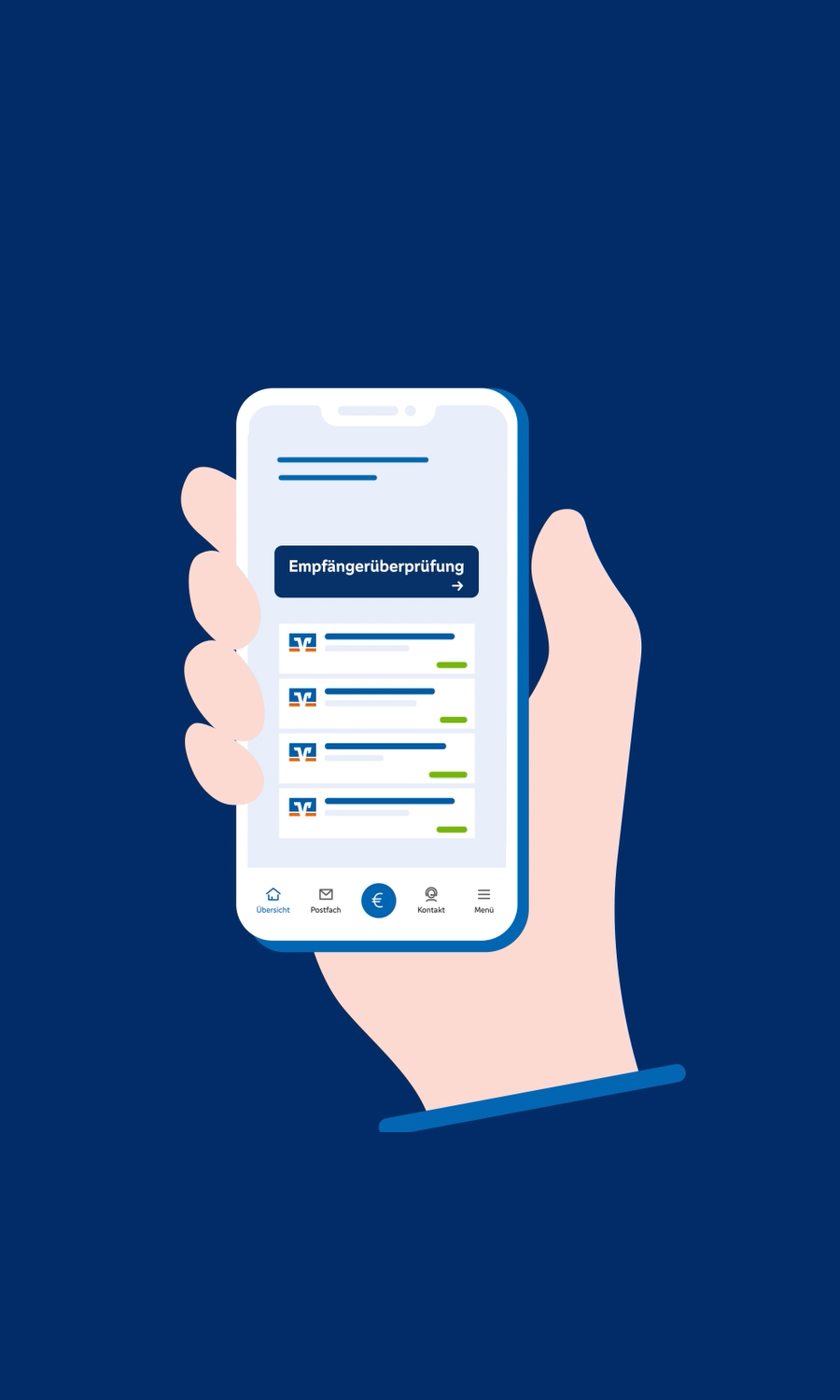 Wir haben gemeinsam mit dem BVR, der DZ BANK, VR-NetWorld und Atruvia einen Film produziert, der Ihnen kurz und einfach erklärt, wie die Empfängerüberprüfung funktioniert: